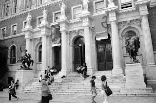 Detalhe da escadaria e dos dois centauros da Academia de Belas Artes de Viena